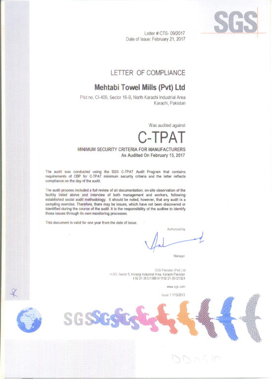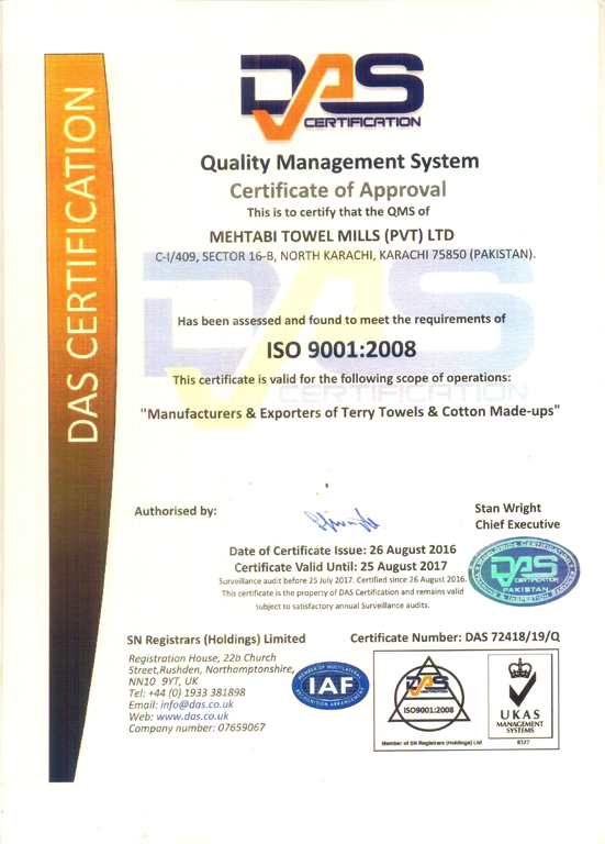 Mehtabi Towel Mills (Pvt) Ltd. complies with world's most demanding, quality and social standards.